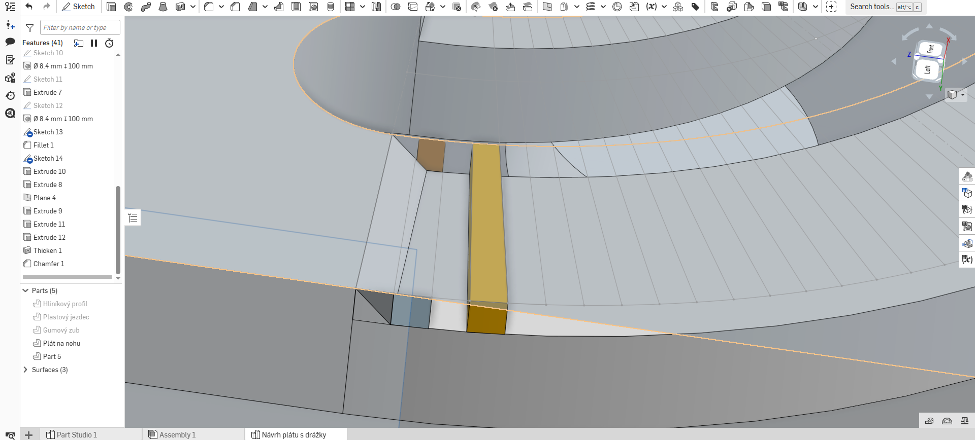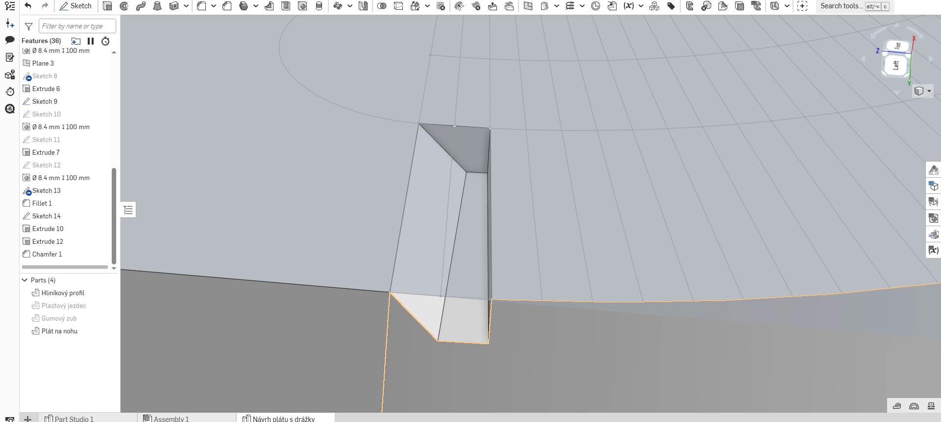 I’m having trouble modeling teeth along the edge of a metal plate for my project. I sketched a circular pattern line (top of the tooth – bottom of the tooth - top of the tooth and so on), but every time I try to use the Chamfer function, the geometry overlaps with the adjacent part (as shown in the photos).