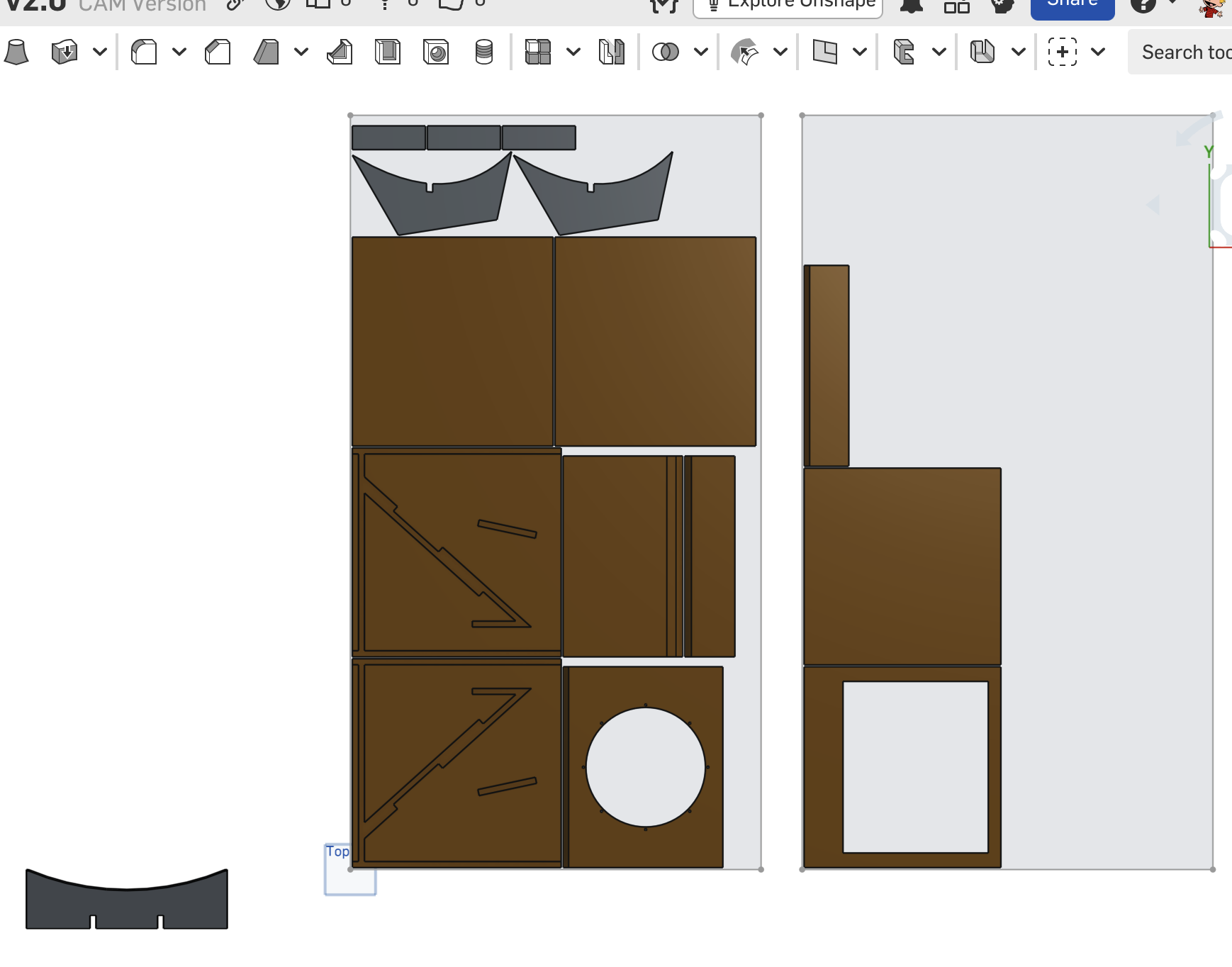 Hello everyone. I'm trying to layout parts of a speaker cabinet to cut from a plywood sheet on CNC. When using the Auto Layout FeatureScript all but one of the parts is laid out nicely on the sheets. For some reason the script leaves one of the parts "out in space", does not place it on a sheet, and has it angled on a different plane than the other parts. Here's a screen shot of the result of using Auto Layout- you can see the one gray part that didn't make it onto a sheet down in the lower left corner: