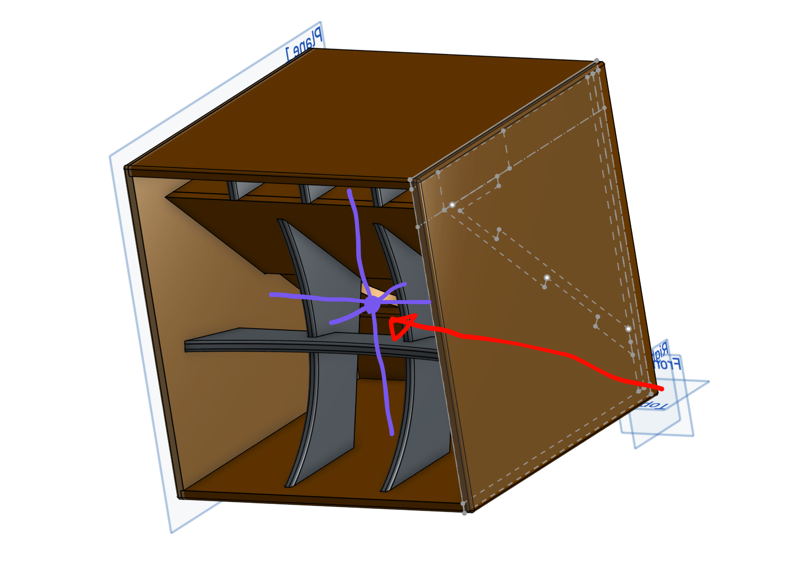 It would help a lot if the main shape was drawn centered on the origin. This helps because of symmetry. The sides could have been mirrored, including their dado cuts, with the click of one button. Same with all the internal ribs. That would save a lot of time and effort, in general.