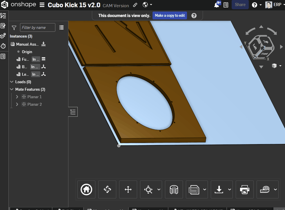 With regards to the mate connectors, I always select the face on the part first, then the plywood sheet second. The orientation of the part in question (in the original part studio) is approx 45 deg skewed from X and Y. If the MC orientation on the part determines how it moves, is there a way to re-orient the part so it only moves on X and Y parallel to the sheet of plywood? Would a different mate connector or method of placing the parts on the sheet work better? Thanks again.