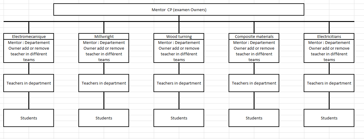 My school now needs to formalize how we handle drawing exams. We need to move exam documents to specific administrators or "organizers" who can then manage the permissions (who can view or modify the drawings) for the students.