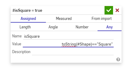 • Do the same thing for your "circle sketch" except insert !#isSquare which will reverse the true false value.