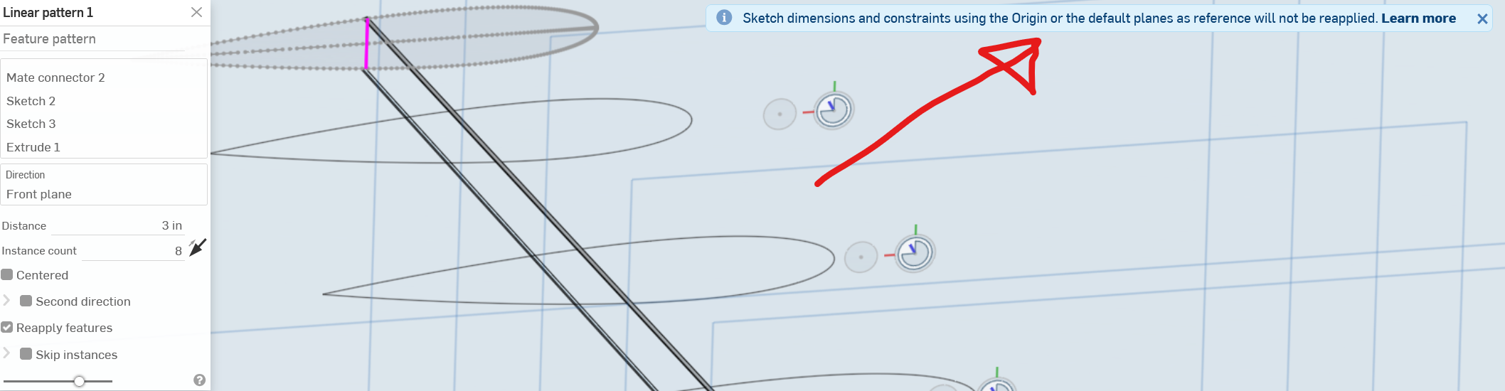 Can someone please help me understand why the linear feature pattern isn't generating some instances