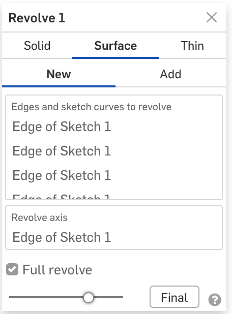 Which is as I asume from the fact that onshape doesn't consider any parts are in the project yet, it only lists one surface.