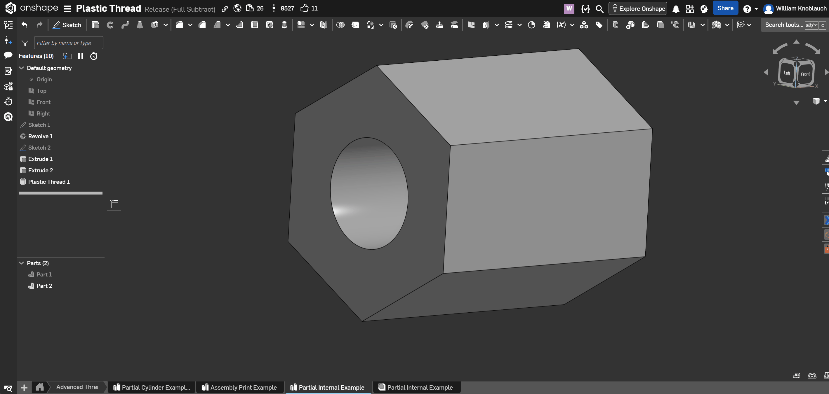 You can find the FeatureScript here Plastic Thread. The document has many examples as well as the full code base. If you have any comments or concerns please leave them below.