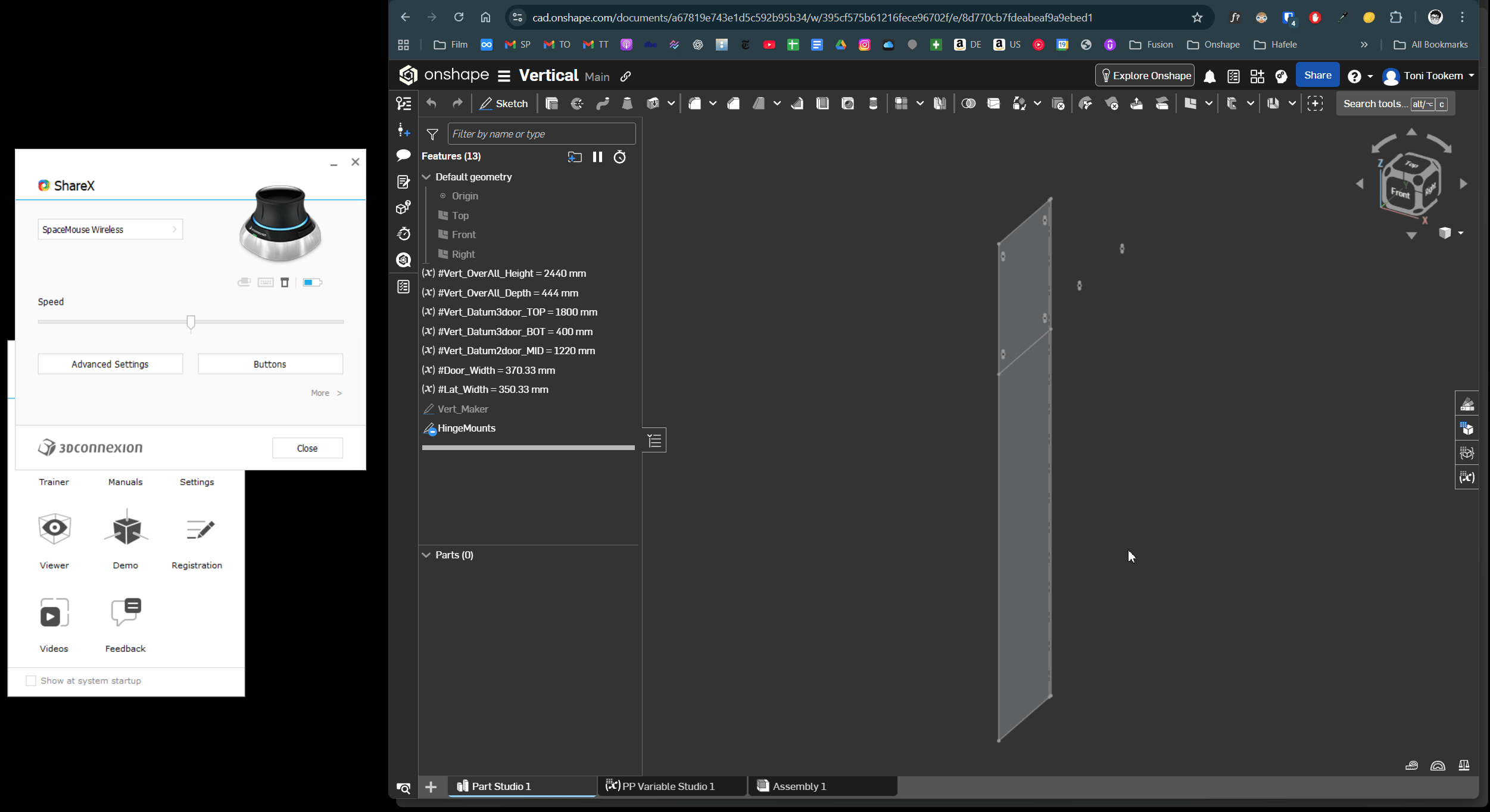 Thanks for all the fixes but mine still doesn't work. I mean its connected but only rudimentary choppy zoom and 3dconnexion context hotkeys. I don't get orbit or pan and they are enabled in the 3dconnexion app. The 3dconnnexion app says chrome should it say Onshape because it looks like I am only getting basic browser controls. See attached gif. Any other ideas?