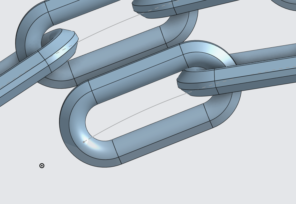 Next I tried a feature pattern using my 3D Points custom feature that can create mate connectors on curves, and that result looks like I'd want. The last links don't end up skewed. Lot's more math required for this approach than feels like should be needed though.
