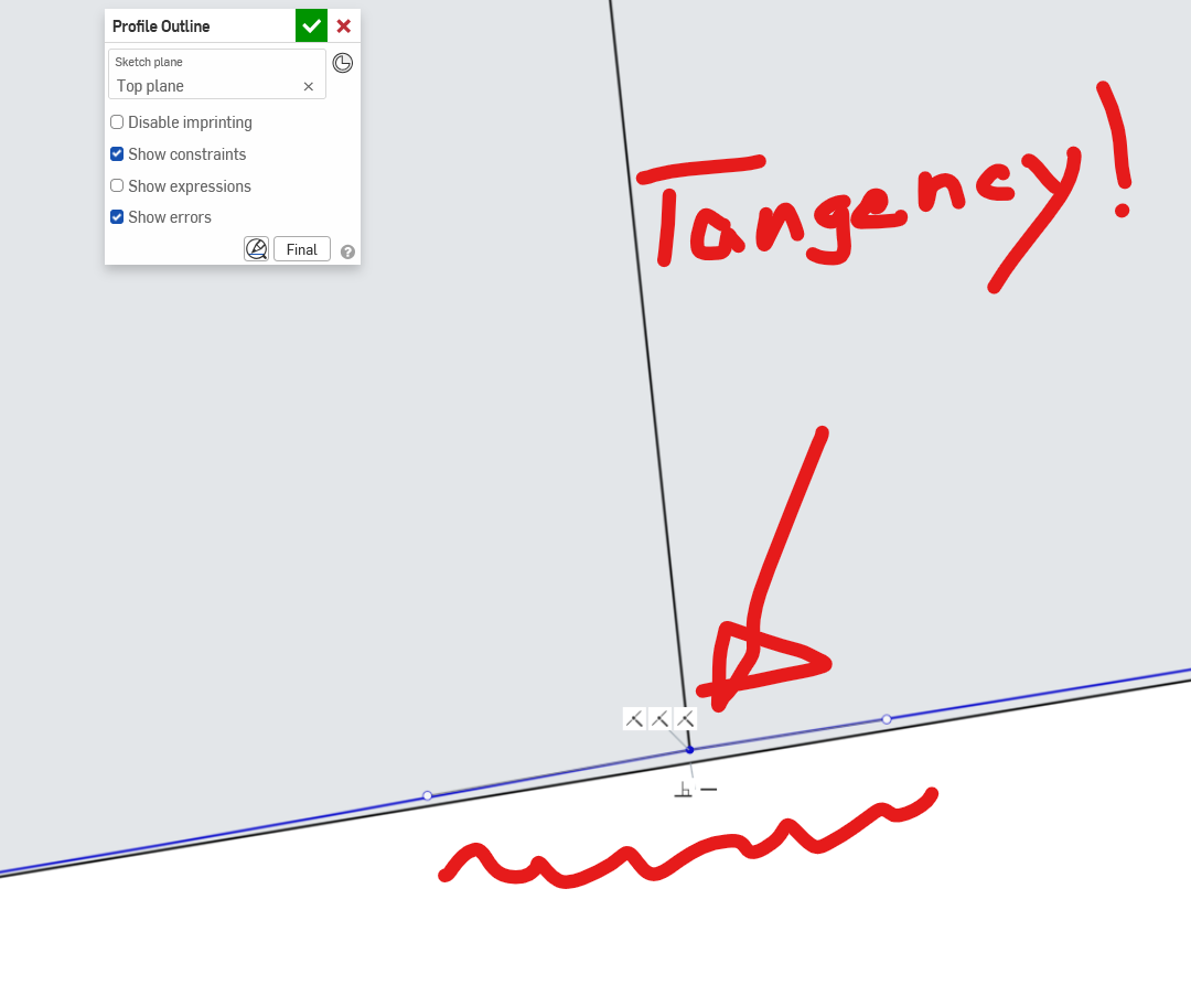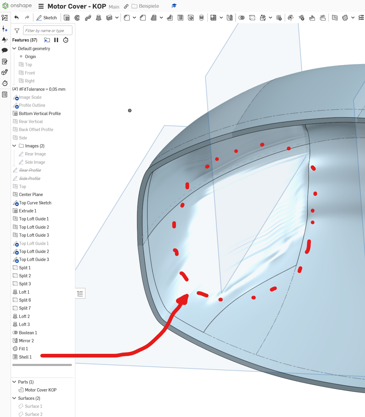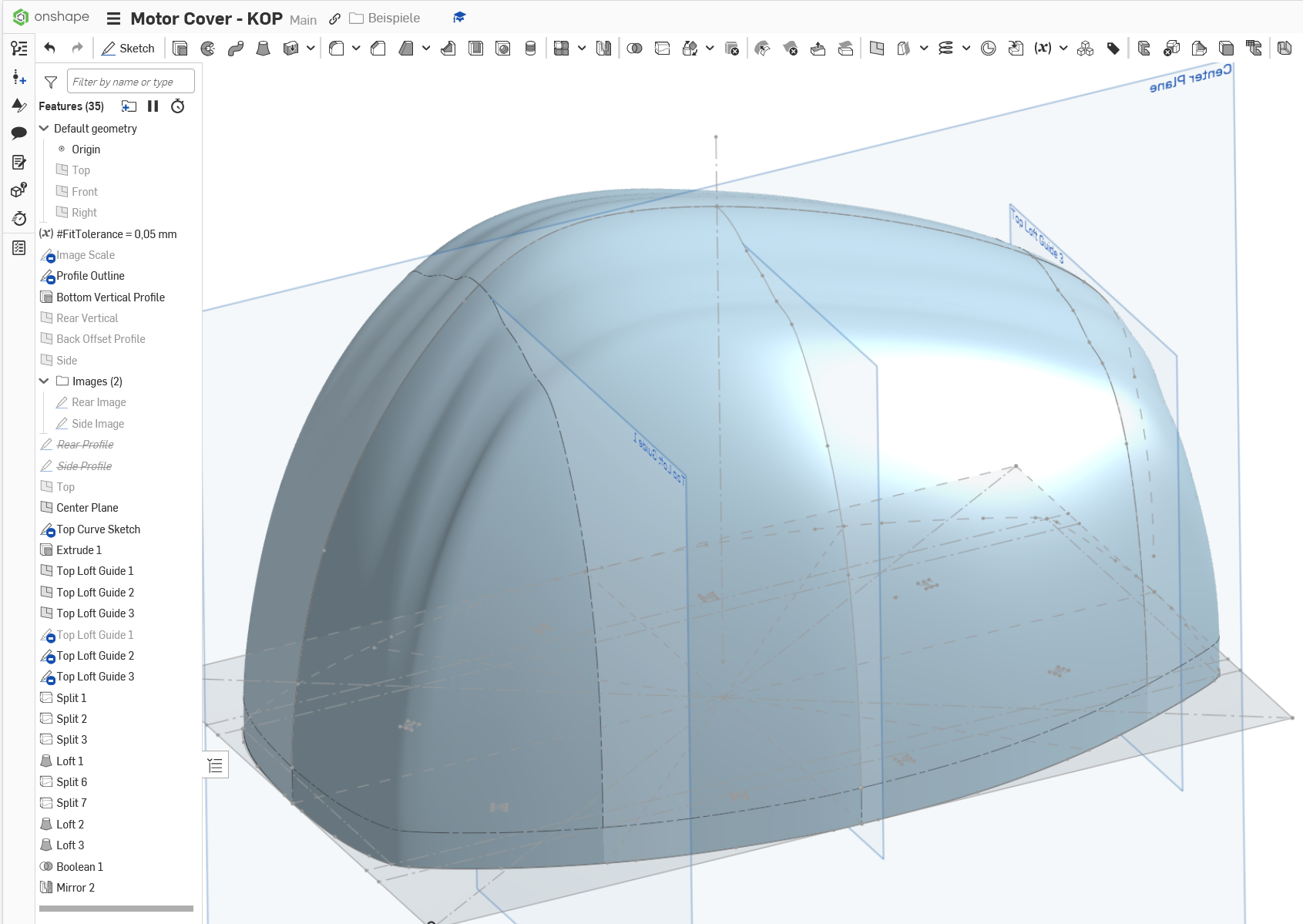 And one more thing: If the part is symmetrical, only do one side and later mirror. That makes it easier. Use helper geometry to define tangency.