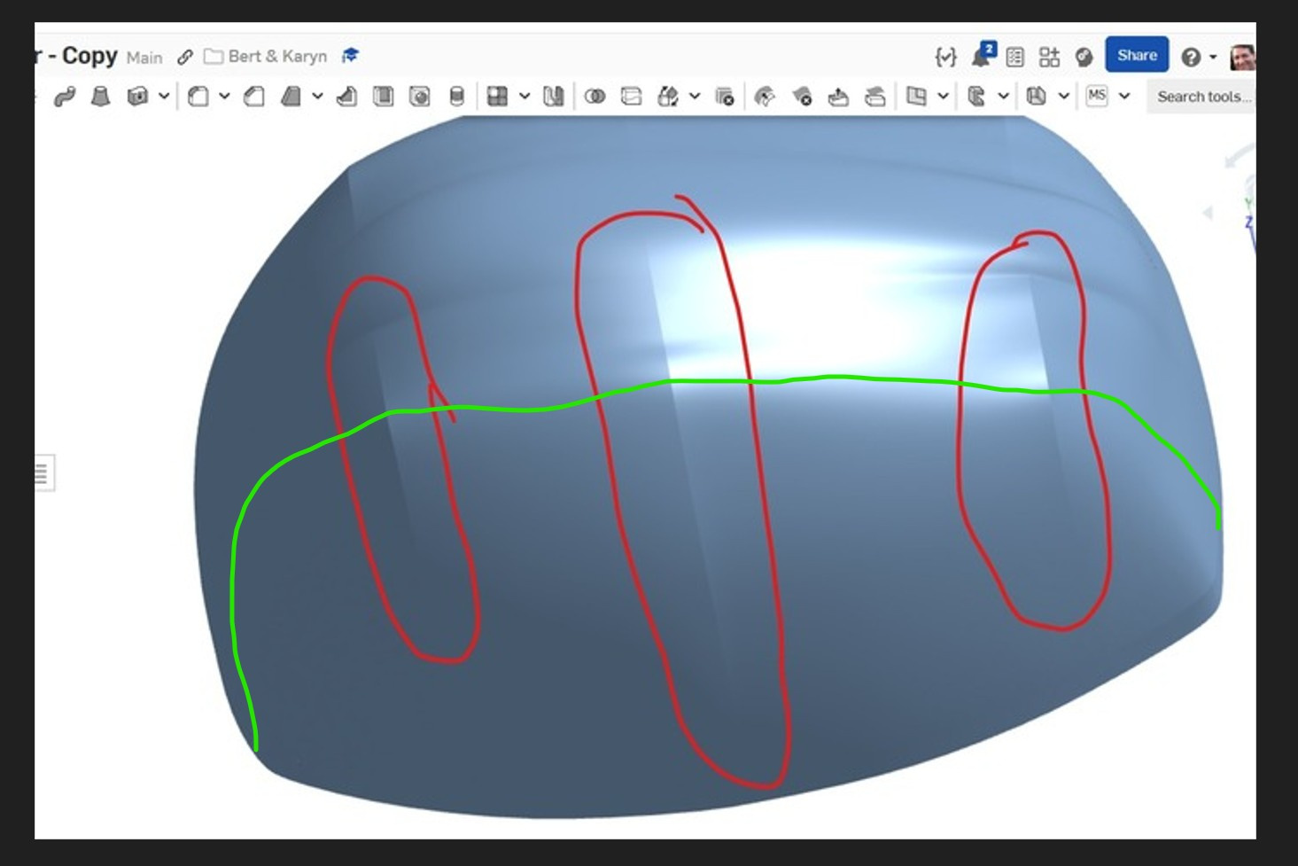 Thanks for all the input. I think I need to get back to the basics and review more tutorials on surface modeling to build more foundational knowledge. Sorry to waste anyone's time when I haven't yet done enough homework on my own. I have already adjusted the shape in the master document, and I think I keep falling into the trap of starting too complicated geometry. I will try to simplify the shape first and then work up to the more complicated geometry.