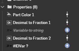 var theString; if (whole==0) { theString=numerator~"/"~denominator; } else { if (numerator==0) {theString=whole;} else{theString=whole~"-"~numerator~"/"~denominator;} } setVariable(context, definition.varName, theString);My use-case realistically is only going use 1/16 or 1/32 range of precision so I haven't tested it away from there. I also expect that the input decimal values should actually match the fractional value so I'm not really trying to "find a fractional equivalent" but rather just format a decimal fraction value as a fraction if that makes sense…