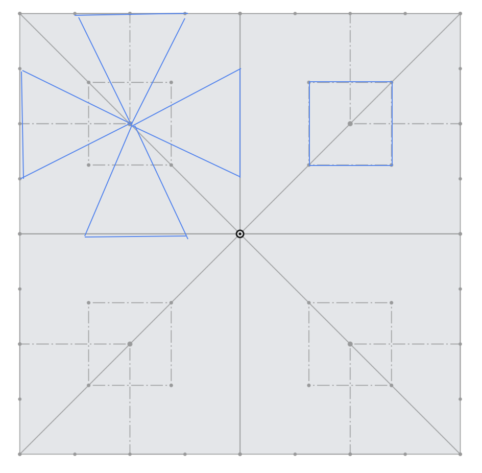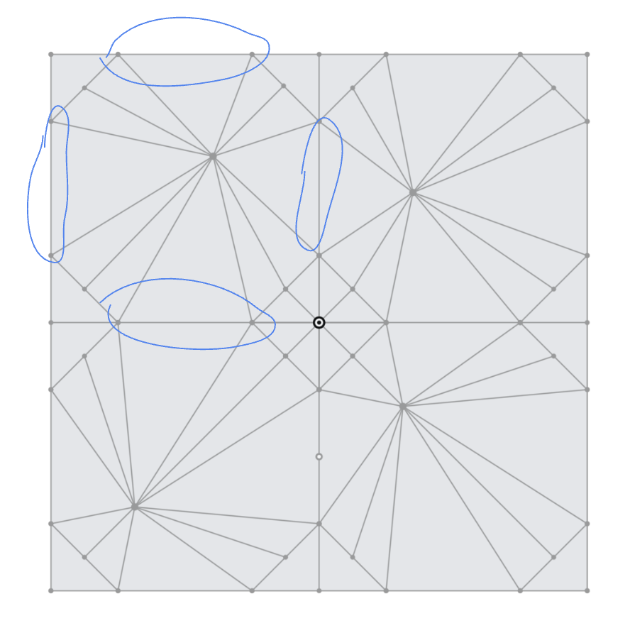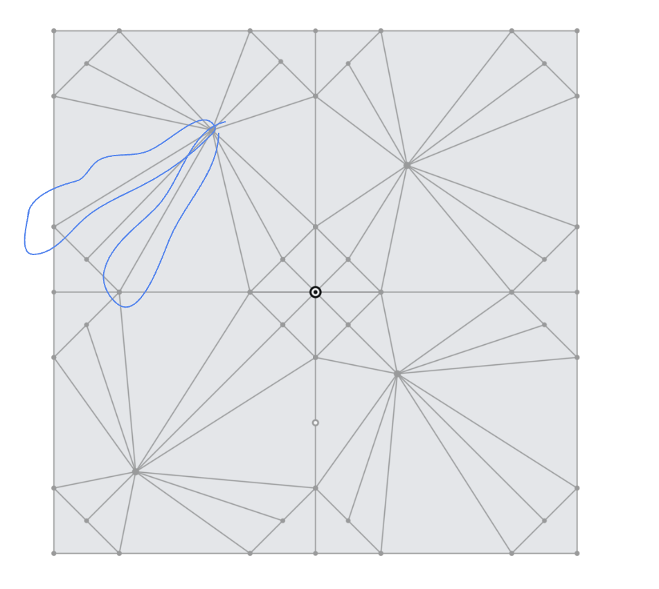3. On the right, you see a blue square? That's where I can change the "pyramid tip position" to get different patterns. By moving the point around inside this shape and building my triangles I can get different shapes