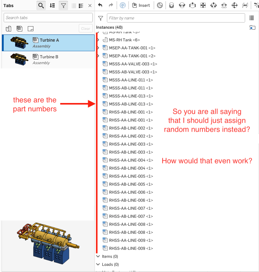 Part numbers aside, I assume you all have to give everything names? Then you have drawings with drawing numbers which are kind of like part numbers…so there are a lot of "names" to manage as the project grows.