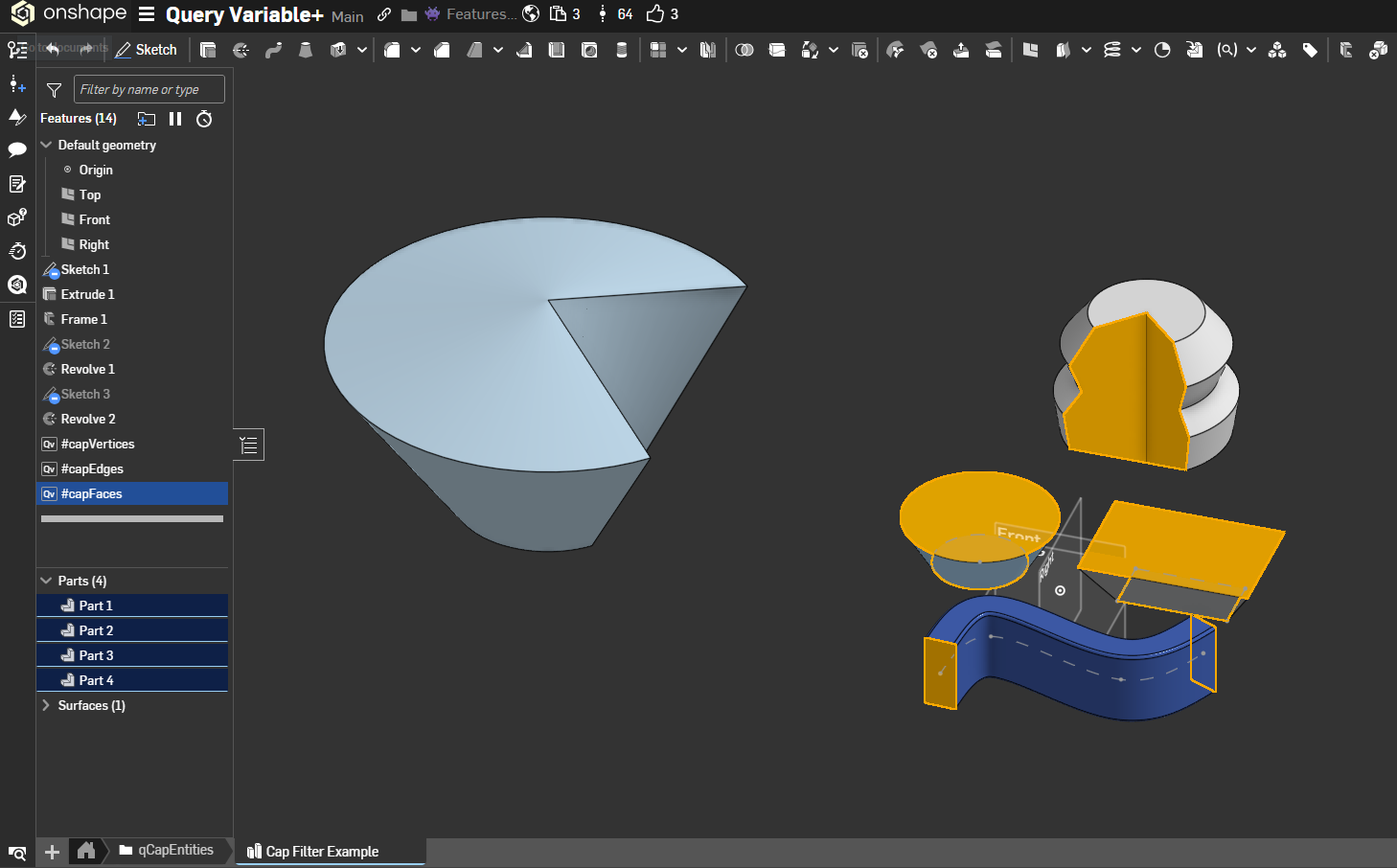 I did start with cap vs noncap being a separate field but because Onshape's standard library has them defined as separate features I did them as separate selections for consistency with how you would actually implement things in a featurescript and with the Query Explorer's implementation.