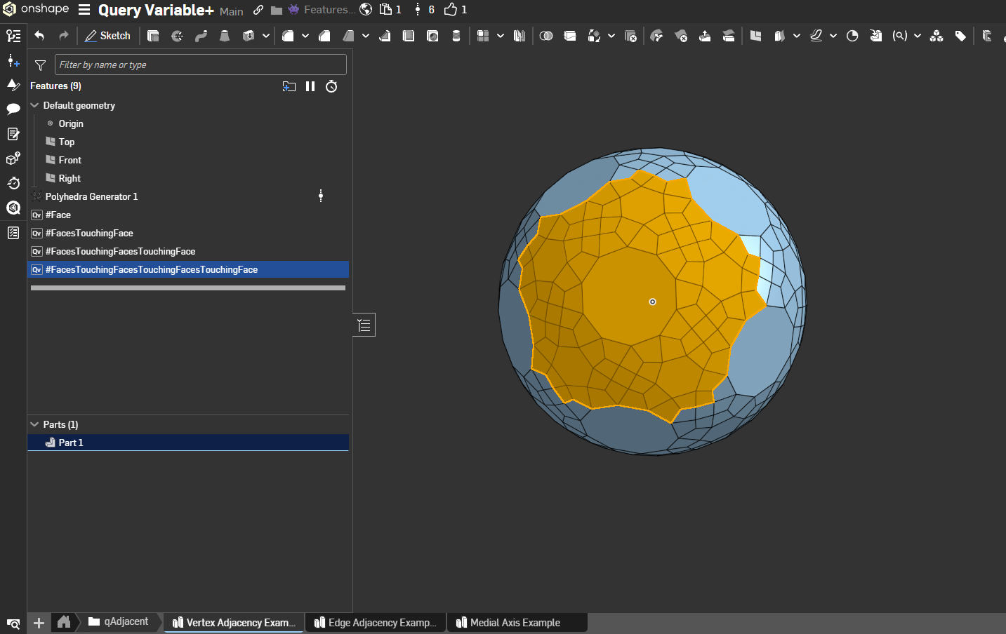 I used your query Variable + in qAdjancy mode. I wanted to query a face AND all its adjacent faces. I think this is a common use for it. However the qAdjacent only queries the adjacents, and omits the seed faces. I had to add those by uniting with an additional query. It works, but it cumbersome and less robust. if i want to edit the seed faces, i'll have to edit them in two different places.