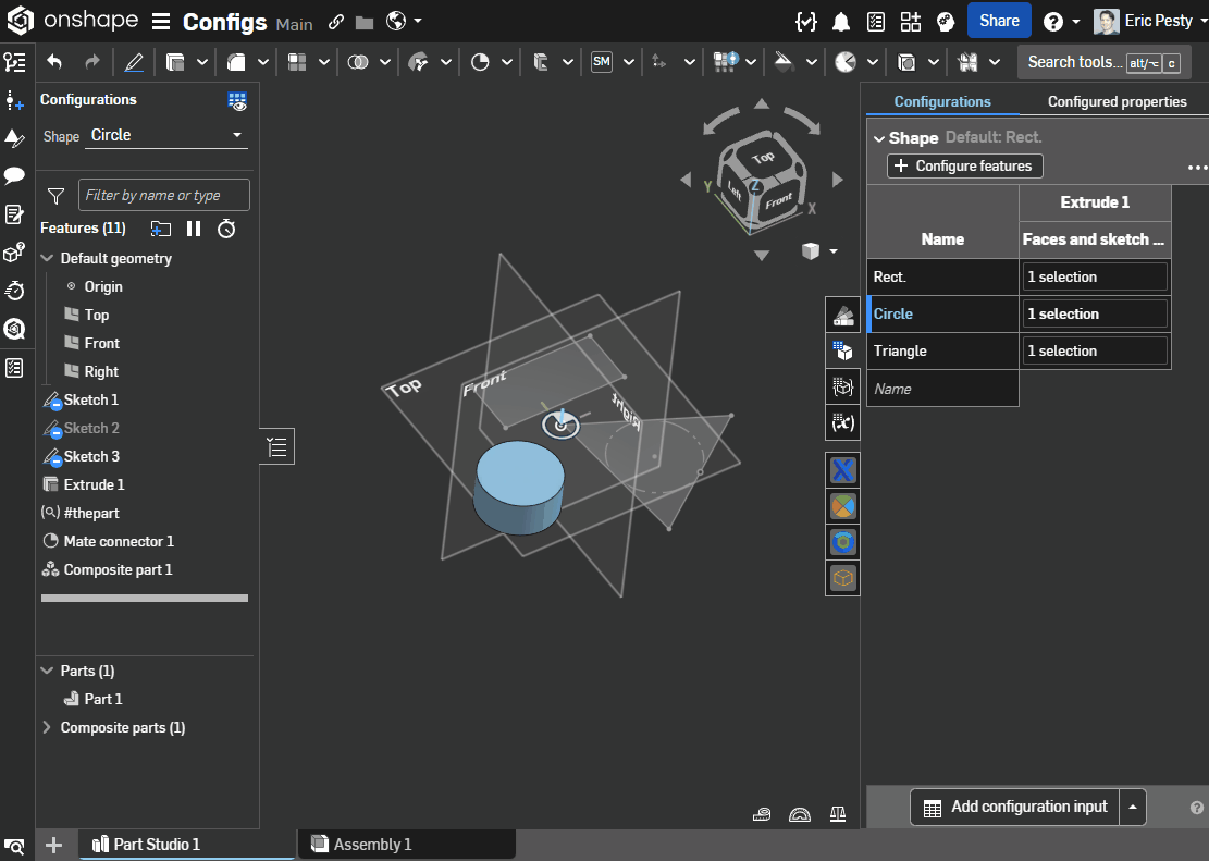 • Even though the Parts Studio puts out exactly one part corresponding to each list configuration, the Assembly doesn't seem to know how to handle this.