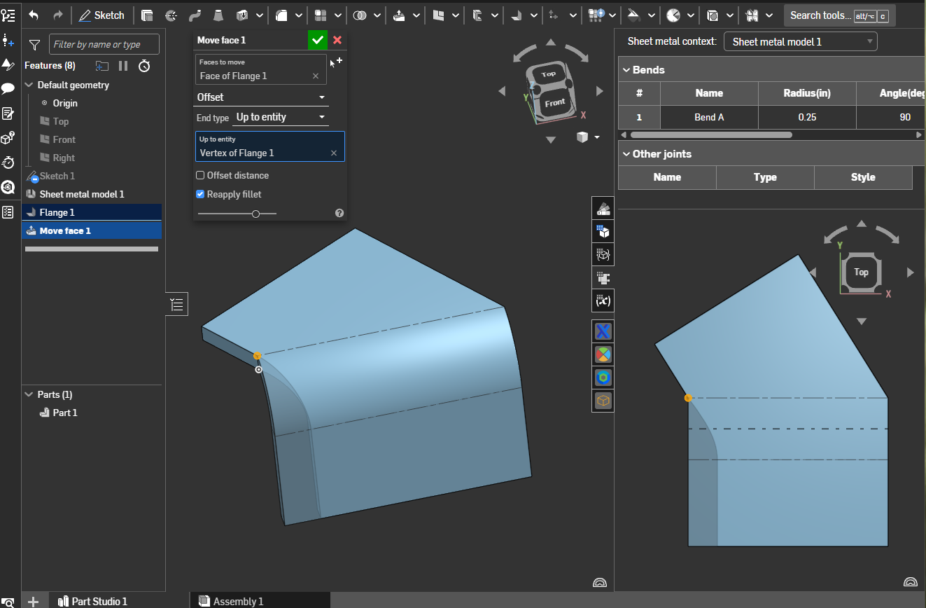 @glen_dewsbury I’m not sure which wording is confusing, but I would like to modify the flange so that the resulting geometry is identical to the reference part geometry — to end up with exactly the reference part geometry using only sheet metal features.