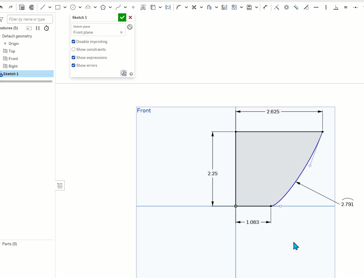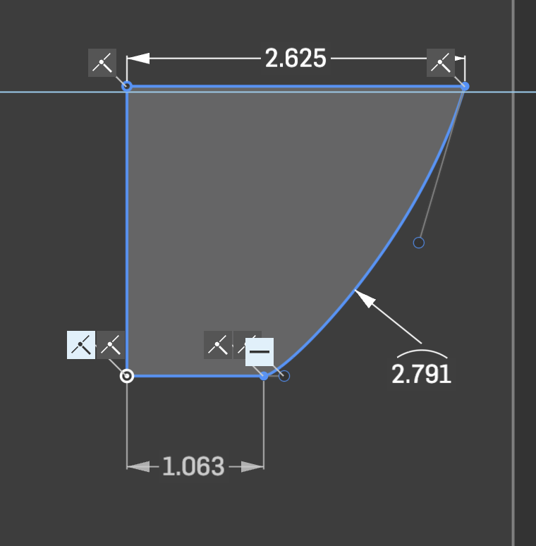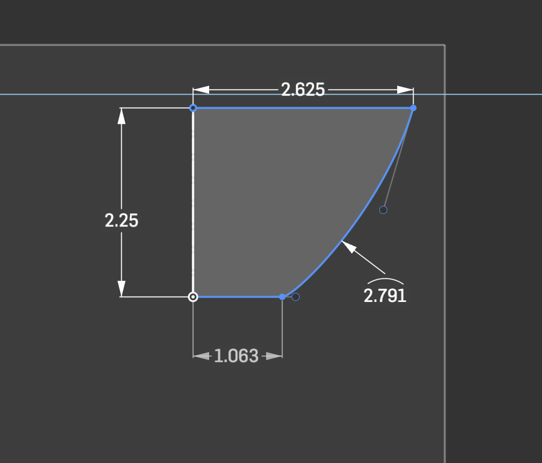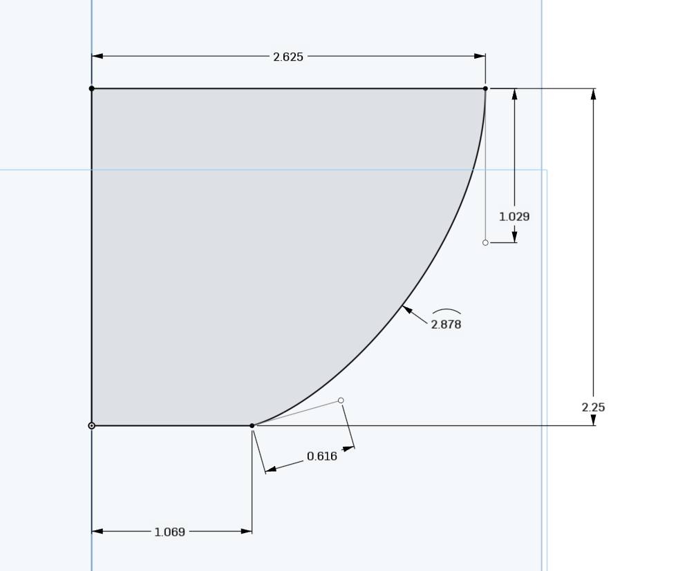 Your 1.063 line is not locked in horizontal or perpendicular to the 2.25 line (your choice)