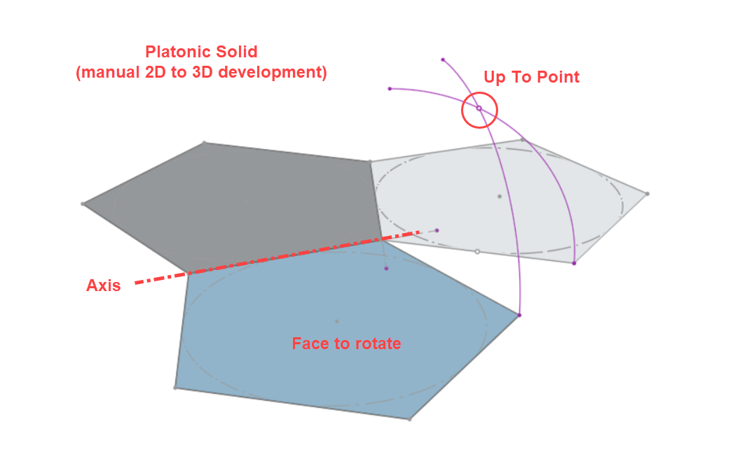 @EvanReese I've got a high school senior I'm mentoring who is intrigued with ID. Lately we've been exploring analog (physical) and digital model creation via developable shapes such as platonic solids. Demonstrating how to develop a cube was a slam dunk (90 degrees). But determining angles required to fold two faces until their edges touch, is a bit more tricky on more complex shapes. The below image shows the technique I'm using to develop a 2D layout in Onshape. The ability to use the move face tool and rotating up to a point would enable us to manually, step-by-step see the geometry become a 3D object.