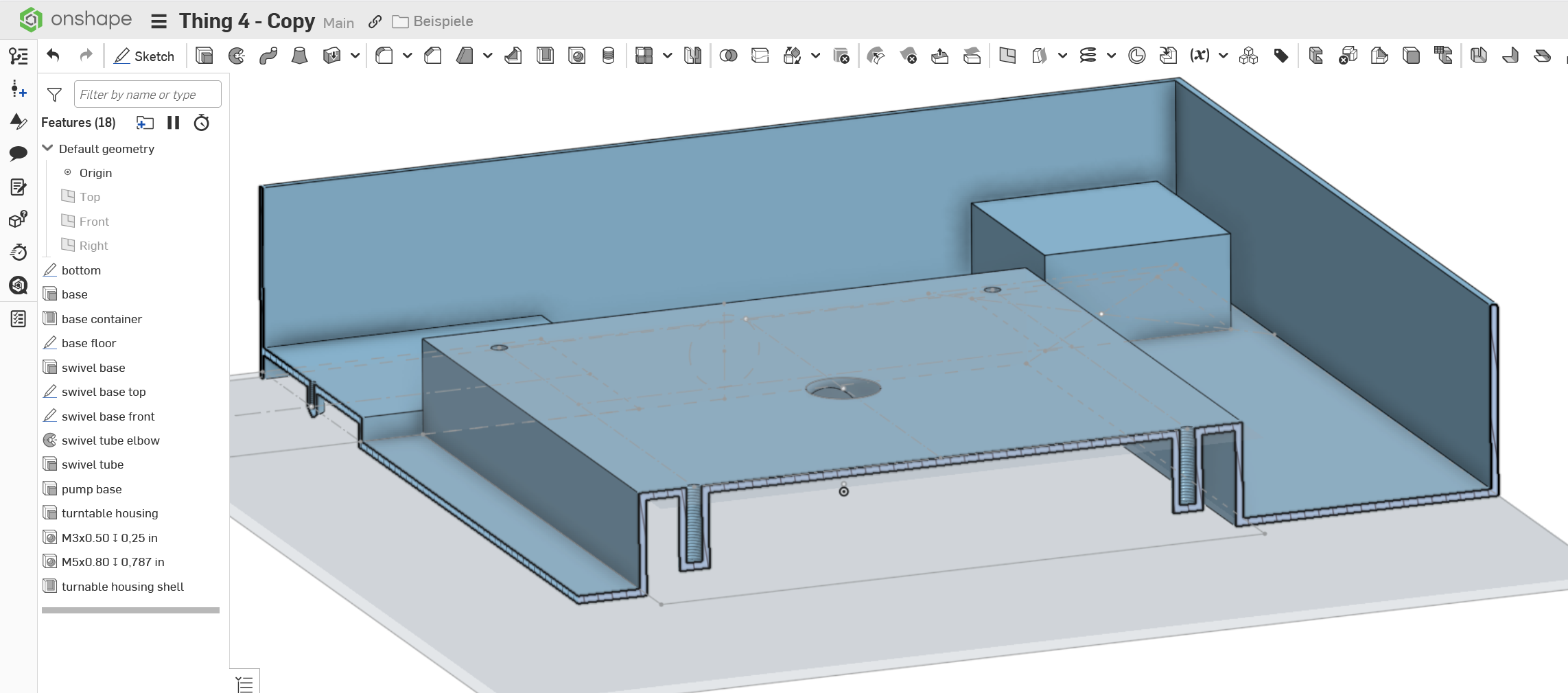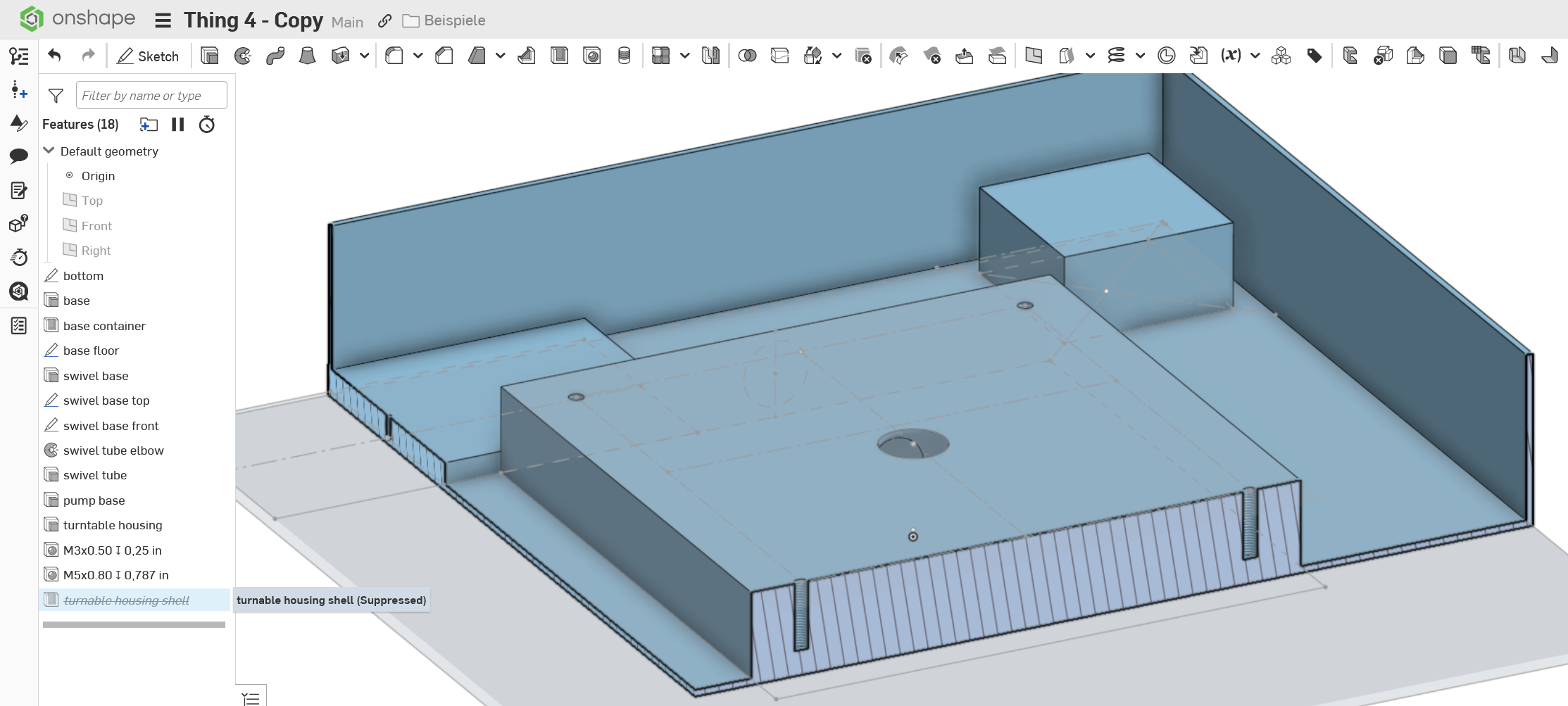 Also, when editing a feature the alignment of the bottom right platform is correct (with the M3 hole), but when not editing a feature the alignment is off and stuff seems to resize. I don't understand why the holes and alignment only work when editing a feature, but outside the editor and when exporting the holes disappear and the alignment is off.