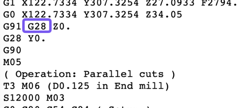 Hope I'm not offbase here, but G28 is the home positionm often called before a tool change, do that makes sense since you are changing to T3 a few lines later. I don't see the point in moving to Z0 and then Y0 immediately after the G28 and right before the before the tool change. Maybe the post processor or your CAM tool pathe needs adjusting. What is part zero, particularly Z, set to?