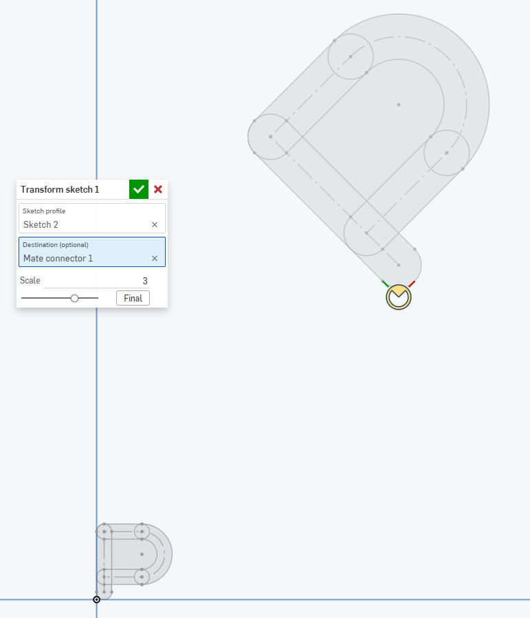 Please note: There is one significant drawback with transforming sketches in FeatureScript in this fashion: The resulting sketch is not editable. You can, however, start a sketch on top of the transformed sketch and "Use" the underlying edges, but that may or may not be an practical workflow. It's that sort of information I'd like to know.