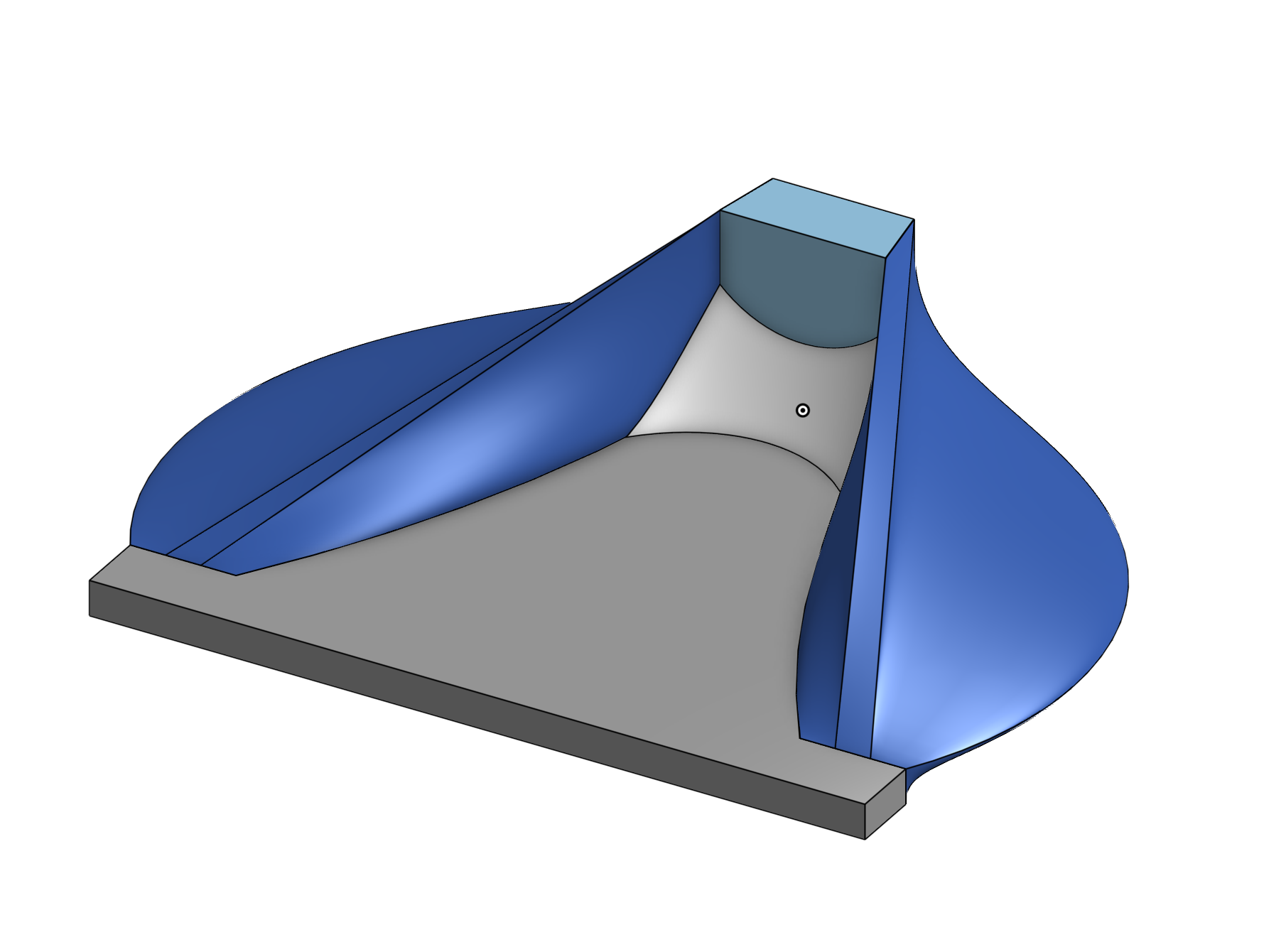 I filled in the area and the made a free floating half ellipsoid or football that I subtracted from it to give a "filleted" look to the corner.