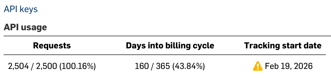 • There's no documented way to see your current usage, so you have to track it yourself.