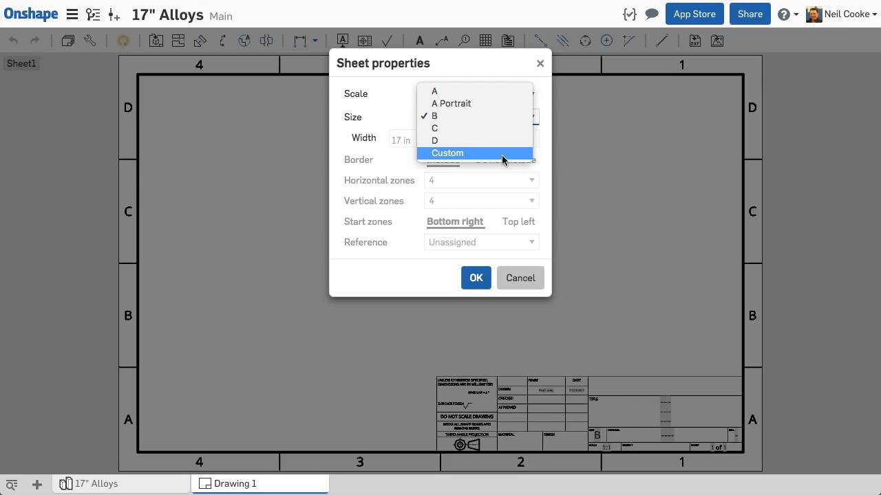 Right now there's no way to do this directly in Onshape, so yes, you'd have to create a blank dwg file elsewhere and import it as a template. I suggest making two enhancement requests. One to make E and F size sheets available, and another to request support for a custom size in the "Custom Template" section of the drawings creation dialog. These sizes are more difficult to implement than the choices we provide now, so making enhancement requests will make a difference in whether and how soon we do them.9